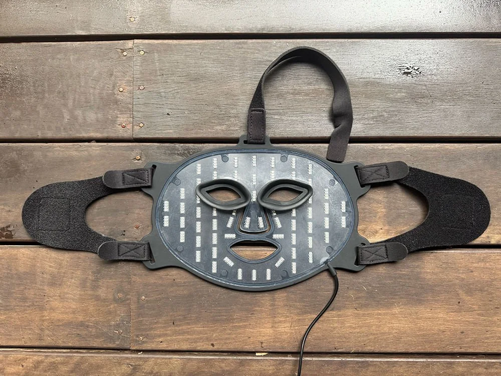 You can see me demonstrate this in the provided photos. Perhaps shockingly, most red light masks do not include both of these strap features, and the result is that large parts of the mask sit well away from your face (meaning they don’t get enough light energy to be effective).
