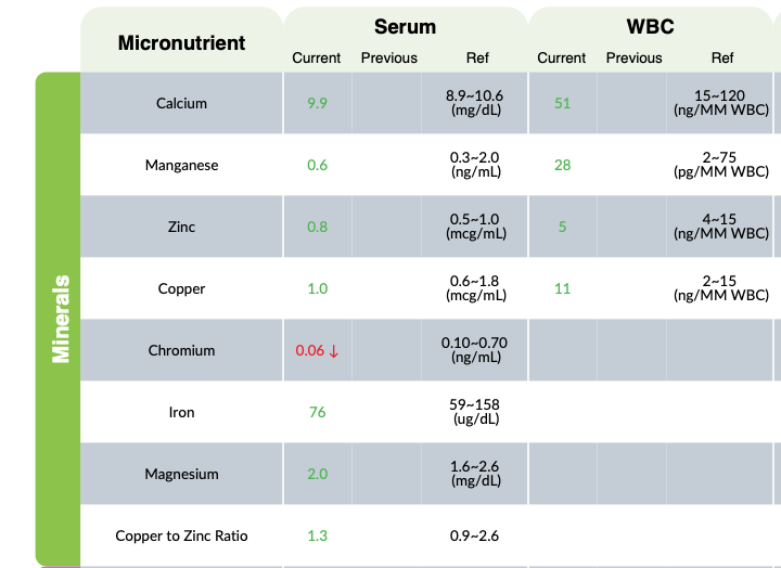 Micronutrient test for Chromium (actionable insight #2)