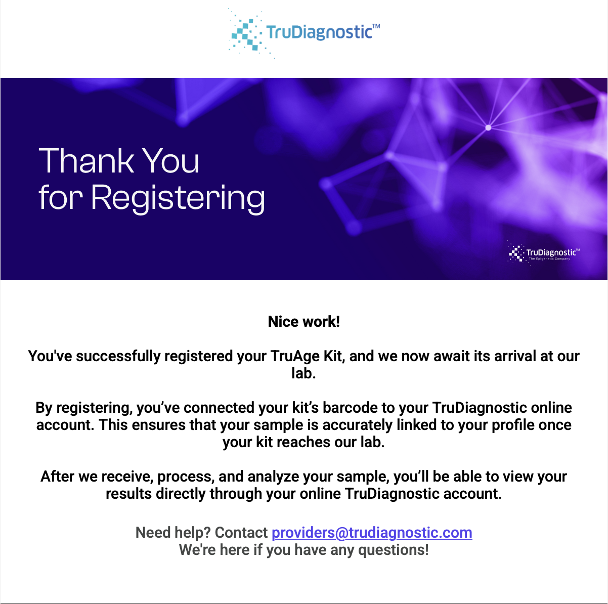 Once you’ve created your account and registered your kit, you’ll receive the first of a few important emails. This is simply a confirmation that your kit has been registered.