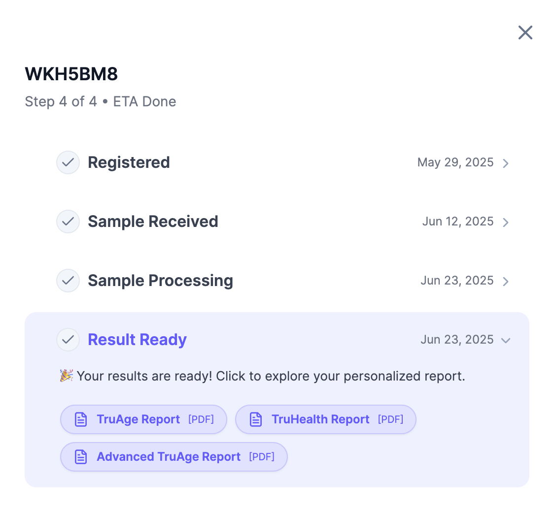 If for any reason you’d like to check on your sample or results, you can also check on the status of your sample in their online portal, which shows the current status of your test kit.