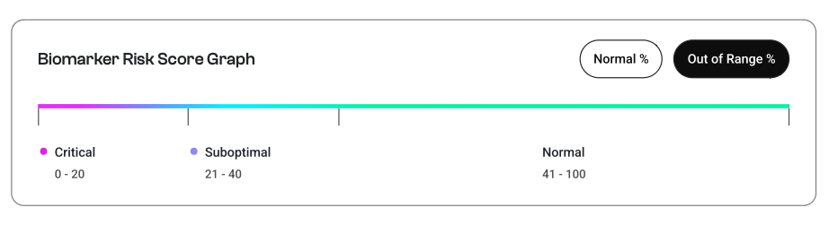 Some biomarkers are best when they’re low (0% is ideal), others shine in the middle (50% is perfect), and some are healthiest when high (100% is the goal). The TruHealth report spells out which range is best for each biomarker, so you know exactly what to aim for. The simple thing to look for is anything that is highlighted in black - that’s out of range.