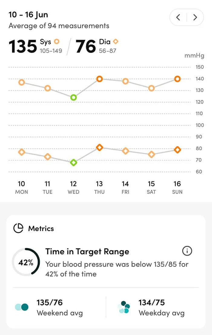 Yes. The Hilo Band measures your blood pressure continuously, day and night. It provides you with numerous ways of viewing your data in their app, including on hourly, daily, weekly or monthly basis. Depending on your activity level, it will take up to a few dozen measurements per day.